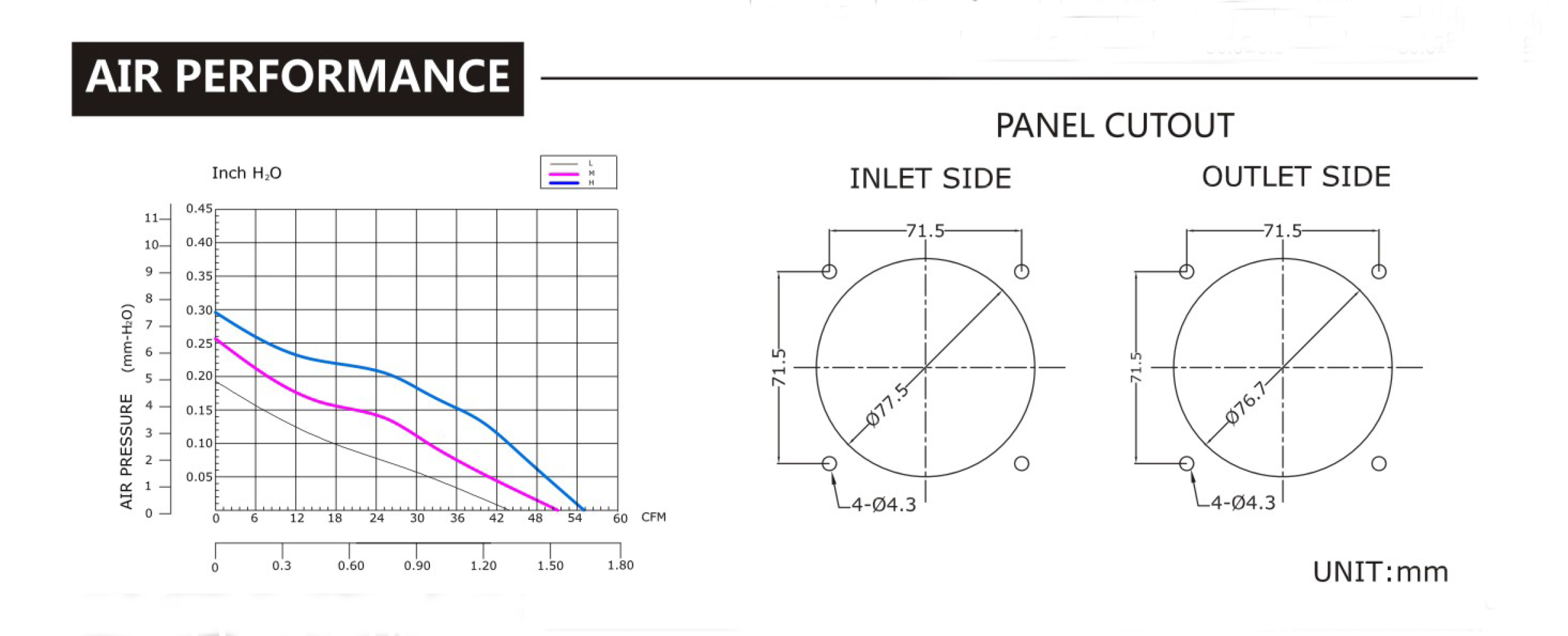 尺寸:80x80x25mm 框架: UL94V-0 PBT 軸承: 含油軸承& 雙滾珠軸承 電壓:DC 5V 12V 24V 48V 壽命:50 000Hours at 25℃--滾珠軸承 30 000Hours at 25℃--含油軸承 工作溫度:-20℃~70℃ 正常濕度 儲存溫度:-20℃~85℃ 正常濕度
